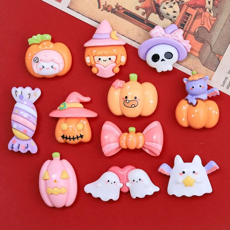 10Pcs New Cute Halloween Pumpkin Ghost Cat Series Flat Back Resin Cabochons Scrapbooking DIY Jewelry Craft Decoration Accessorie