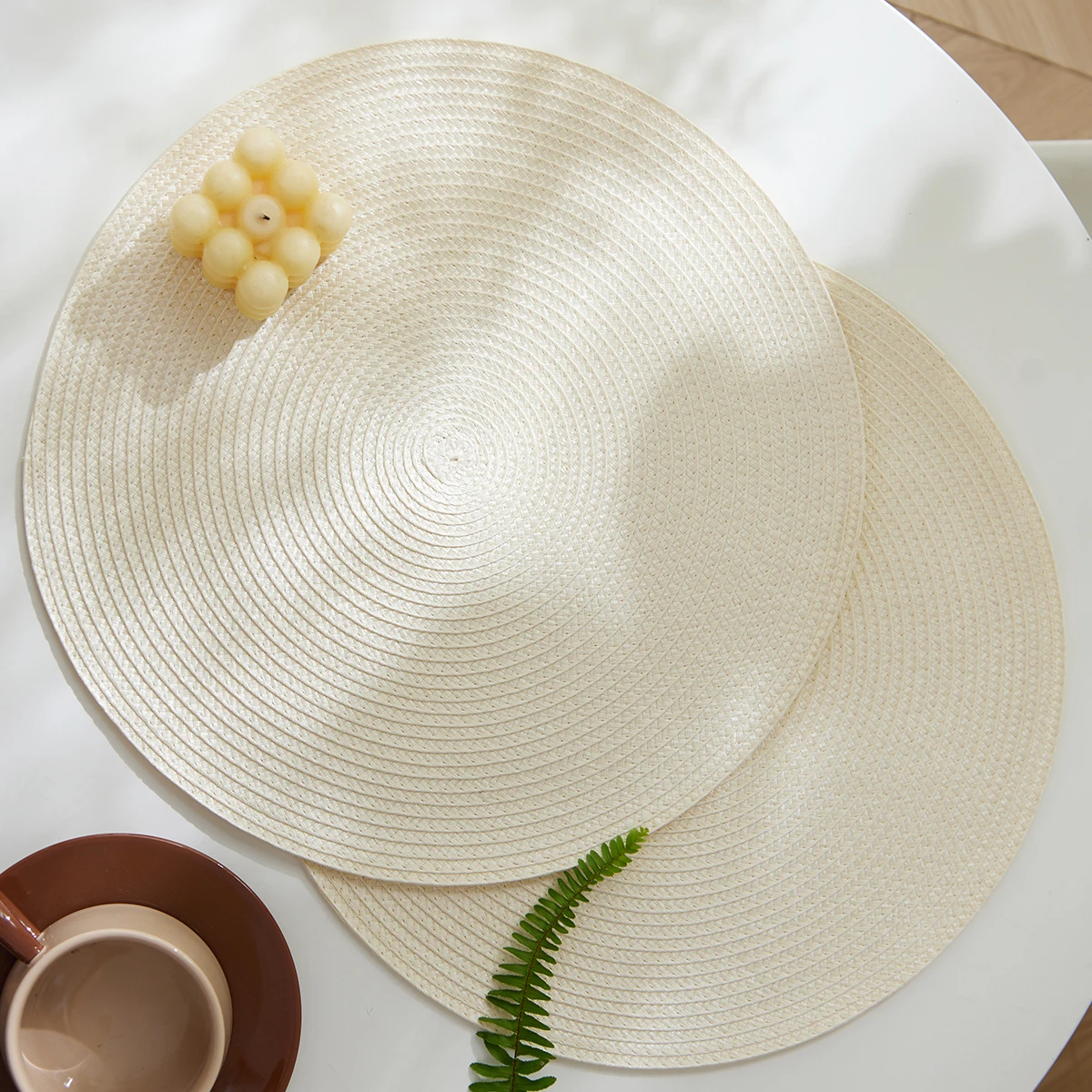 Nordic Style Imitation Cotton Yarn Placemat Round Ramie Woven Coaster Insulation Dish Mat Household Anti-scald Mat