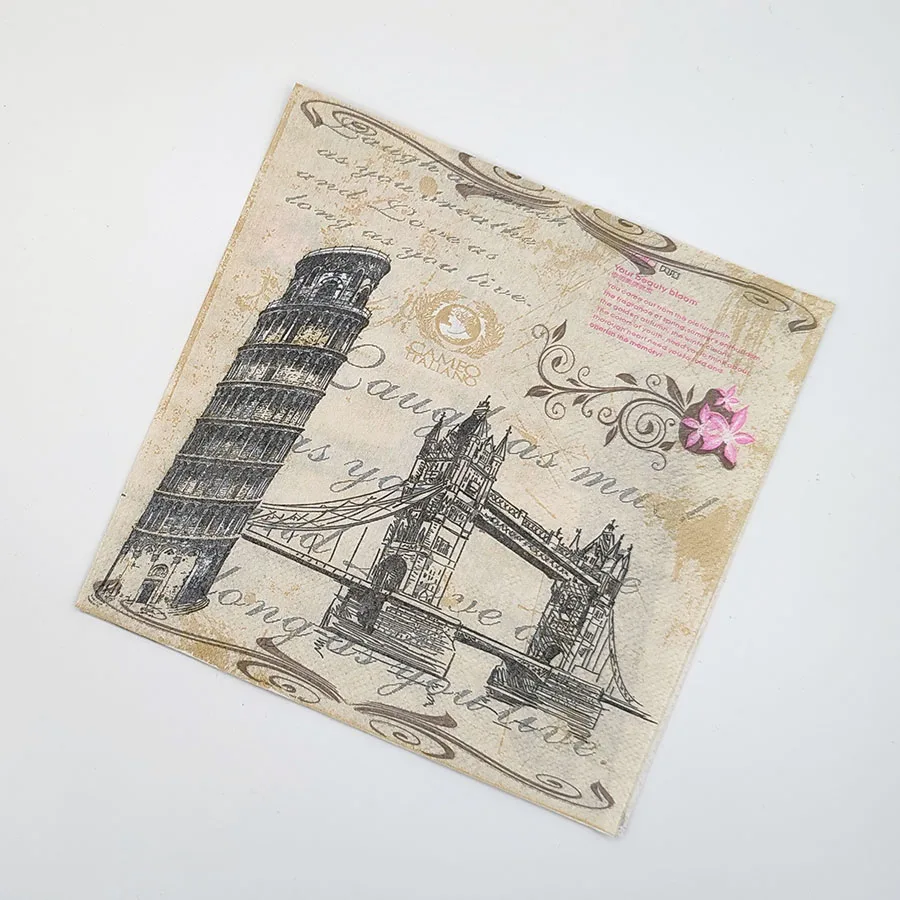 New Leaning Tower Hanging Bridge Scenic Printed Napkins Party Table Decoration Paper Placemats Butterfly Bone Bartlett Paper
