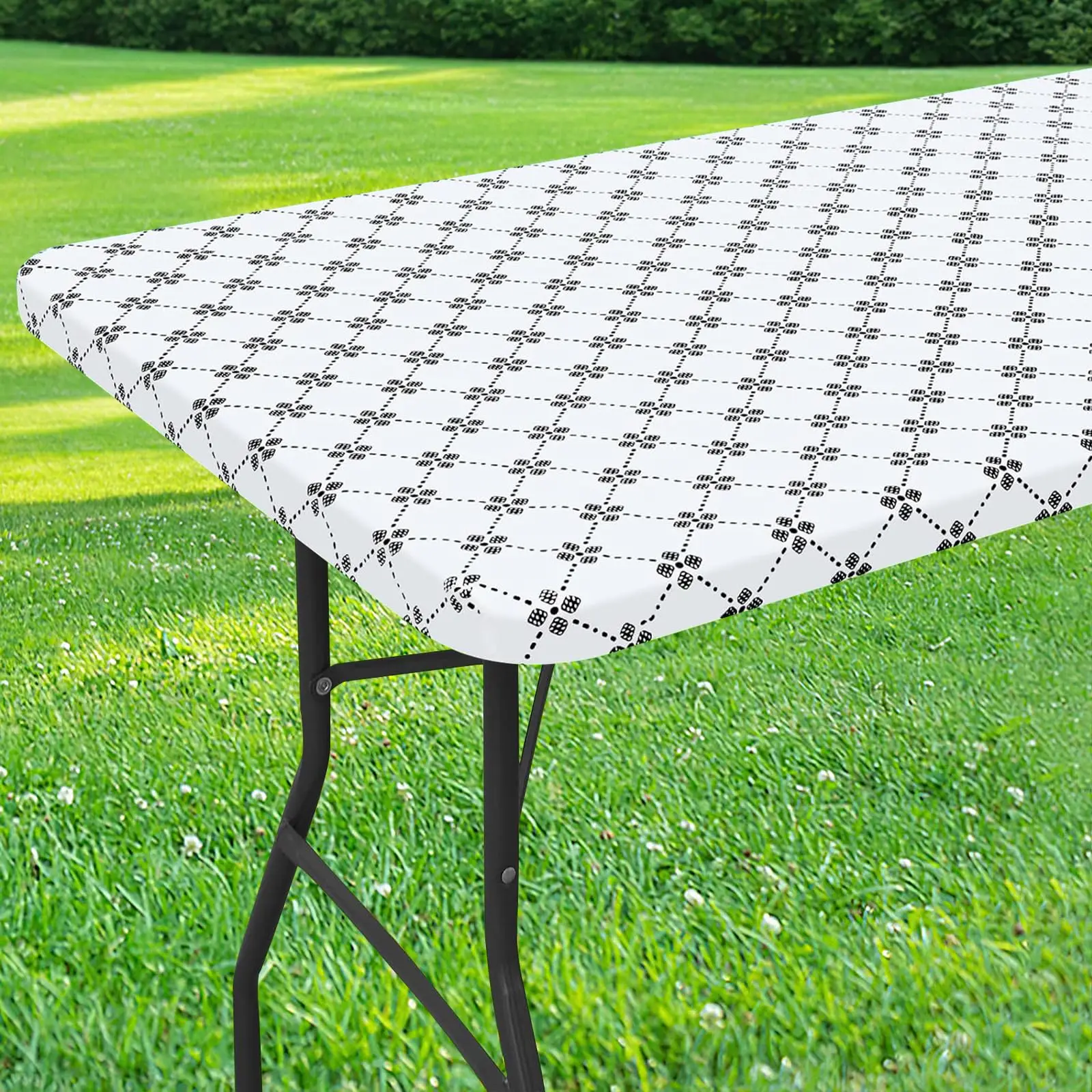 Olanly Rectangle Vinyl Table Cloth Elastic Fitted Tablecloth With Flannel Backing Waterproof Plastic Table Cover Camp Tablecloth