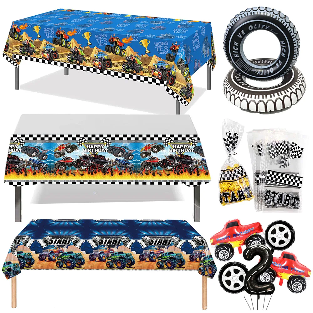 Monster Truck Tablecloth Disposable Plastic Table Cover Monster Truck Balloon Tire Balloon Boys Birthday Party Decor Supplies
