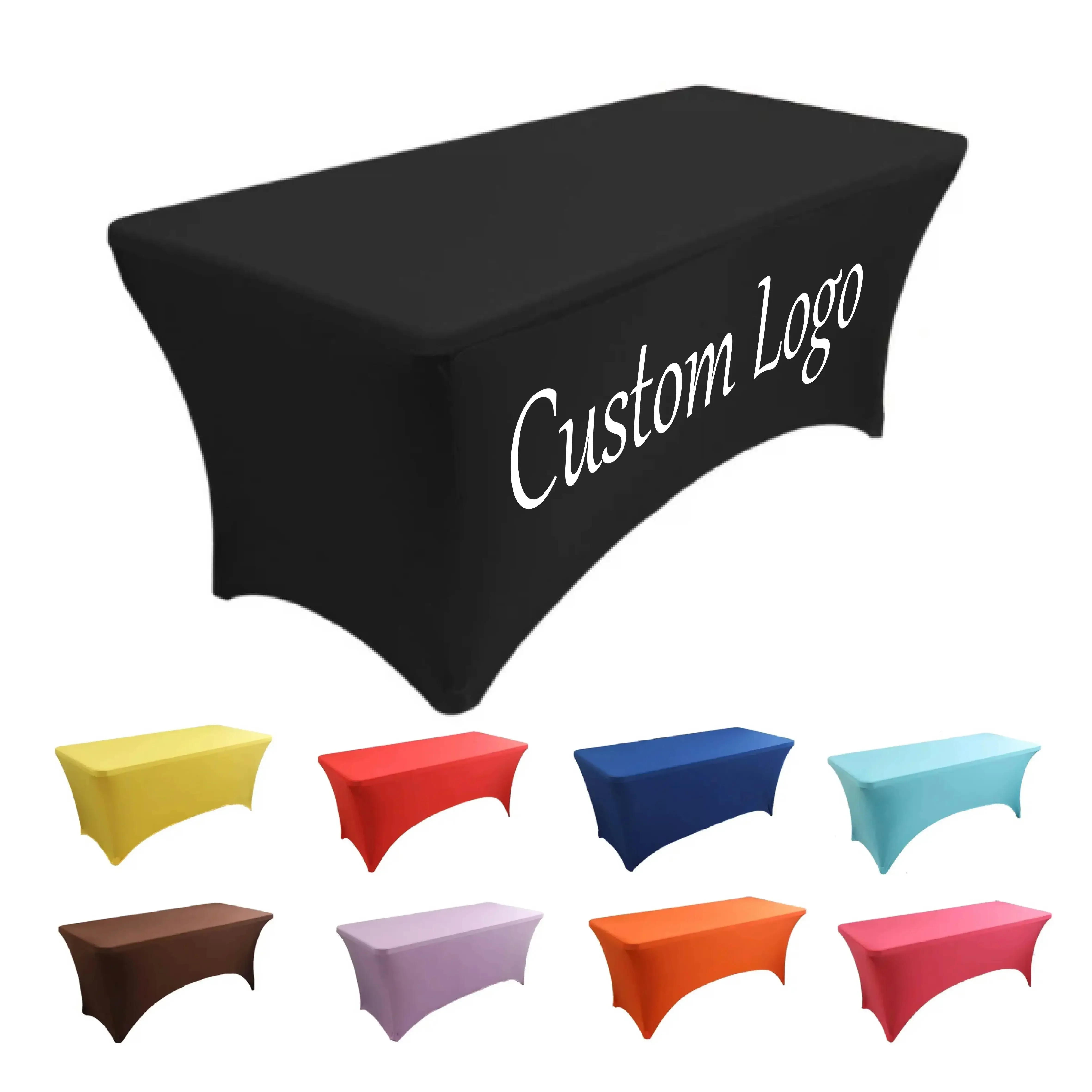 Custom Logo Stretch Tablecloth for Trade Show, Personalize Spandex Table Cover with Logo for Club, Wedding Reception Counter Decor