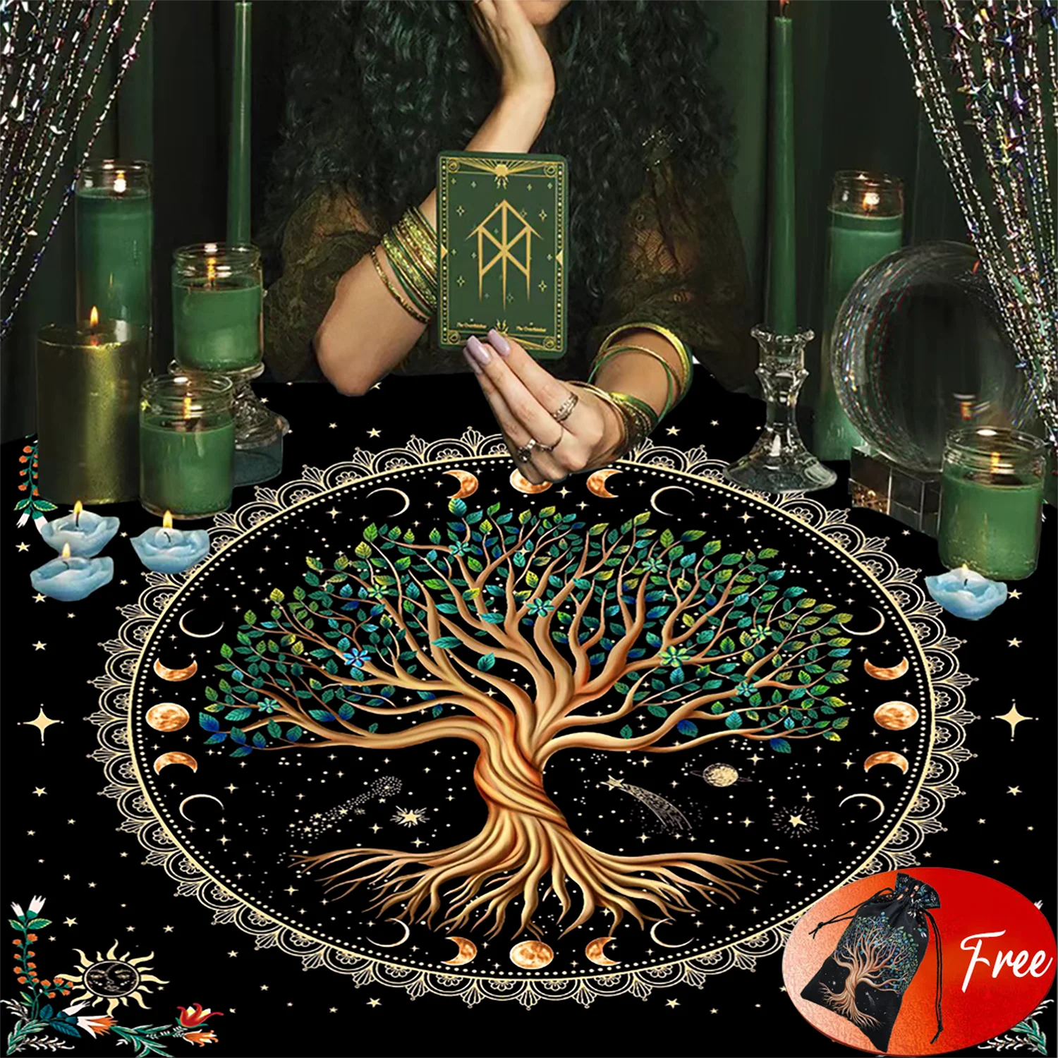 (Free Bag)1pc 29x29In Altar Tarot Card Tablecloth Divination Tree of Life Tarot Tablecloth Playing Card Mat Velvet Tarots Bag