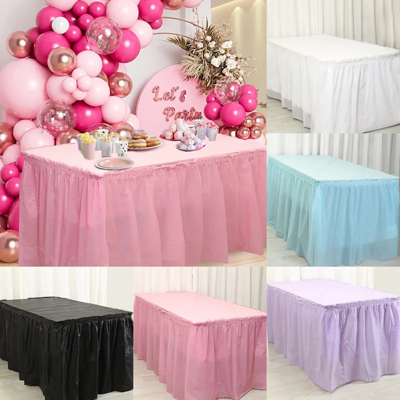 2pcs/pack Plain Disposable Table Skirt, PE Rectangle Tablecloth And Skirt Decoration For Wedding Birthday Party Supplies  Read more