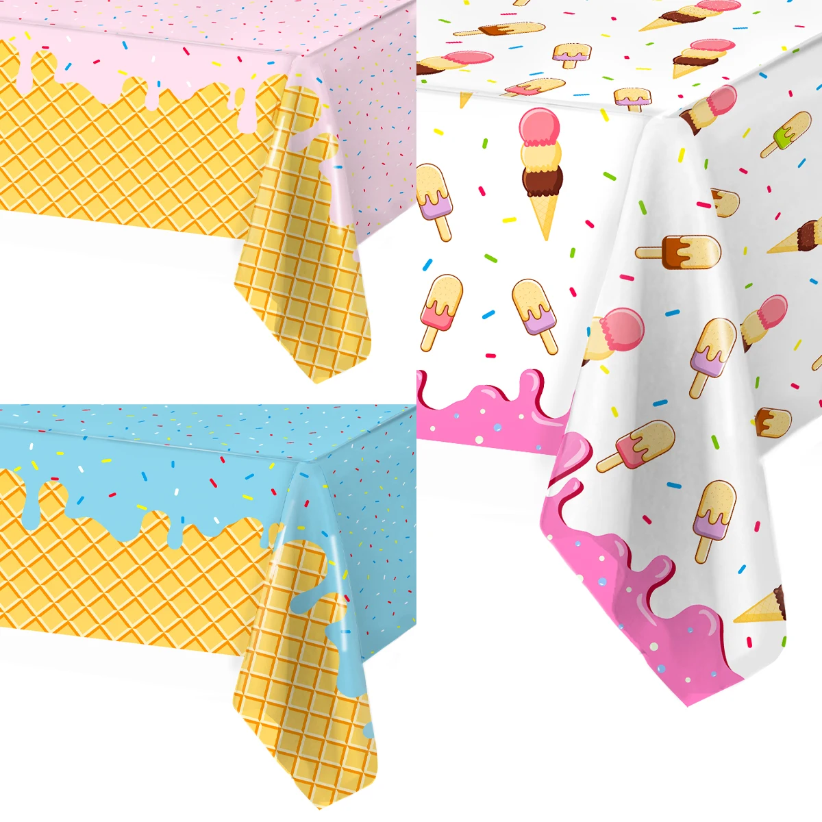 Summer Ice Cream Theme Tablecloth Sweet Cone Table Cover Waterproof Table Decor Birthday Party Supplies Girl Boy Party Decors