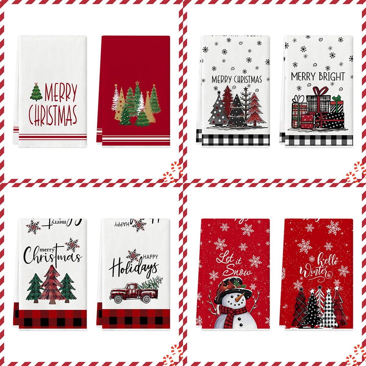 2pcs Christmas Kitchen Towels Merry Christmas Party Decoration 2025 Xmas Santa Claus Dish Towel Navidad Natal New Year Gift 2026
