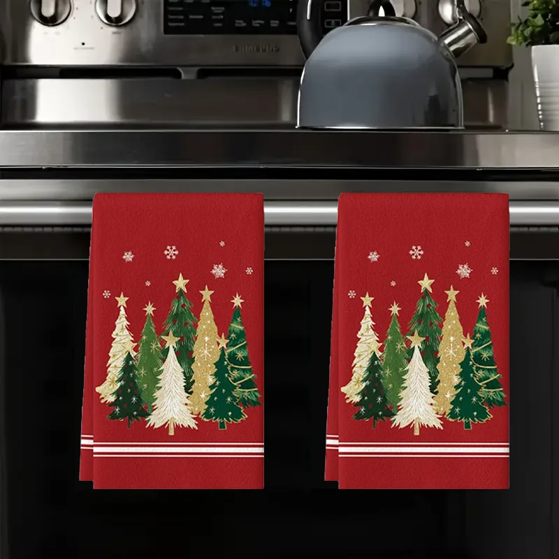 2Pcs, Christmas Starburst Tree Kitchen Towels, 40Cm*60Cm Towel Set, Super Absorbent Soft Cleaning Cloth, Cooking Baking Tea Towel, Tea Towel, Hand Towel, Cleaning Cloth, Dishcloth, Kitchen Decoration,