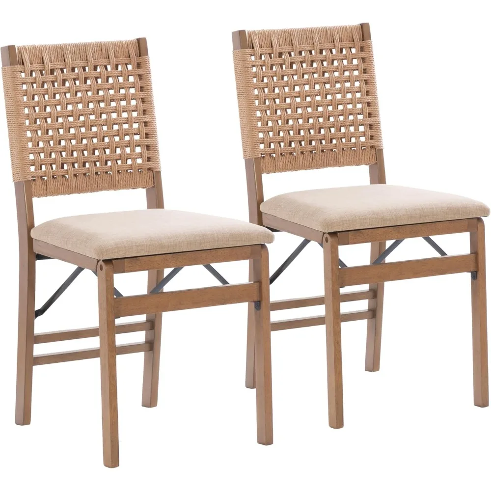 Folding Chairs with Woven Rope Backrest and Linen Seat Cushion, Set of 2  Read more