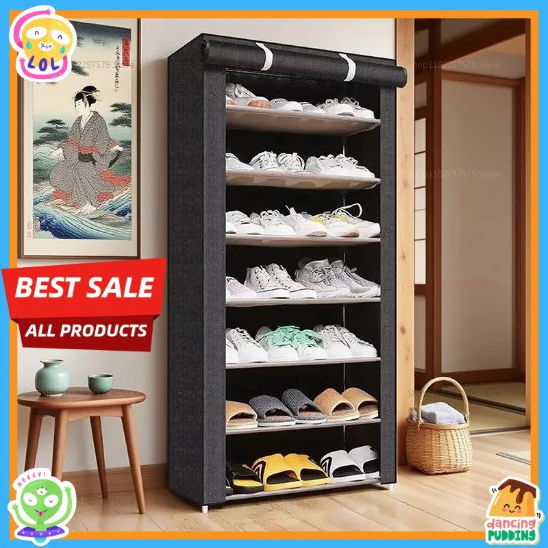 Foldable Dust-Proof Shoe Cabinet with Cover, 5-Tier Space Saver Storage Organizer for Entryway & Closet, Easy AssemblyFabricShoe