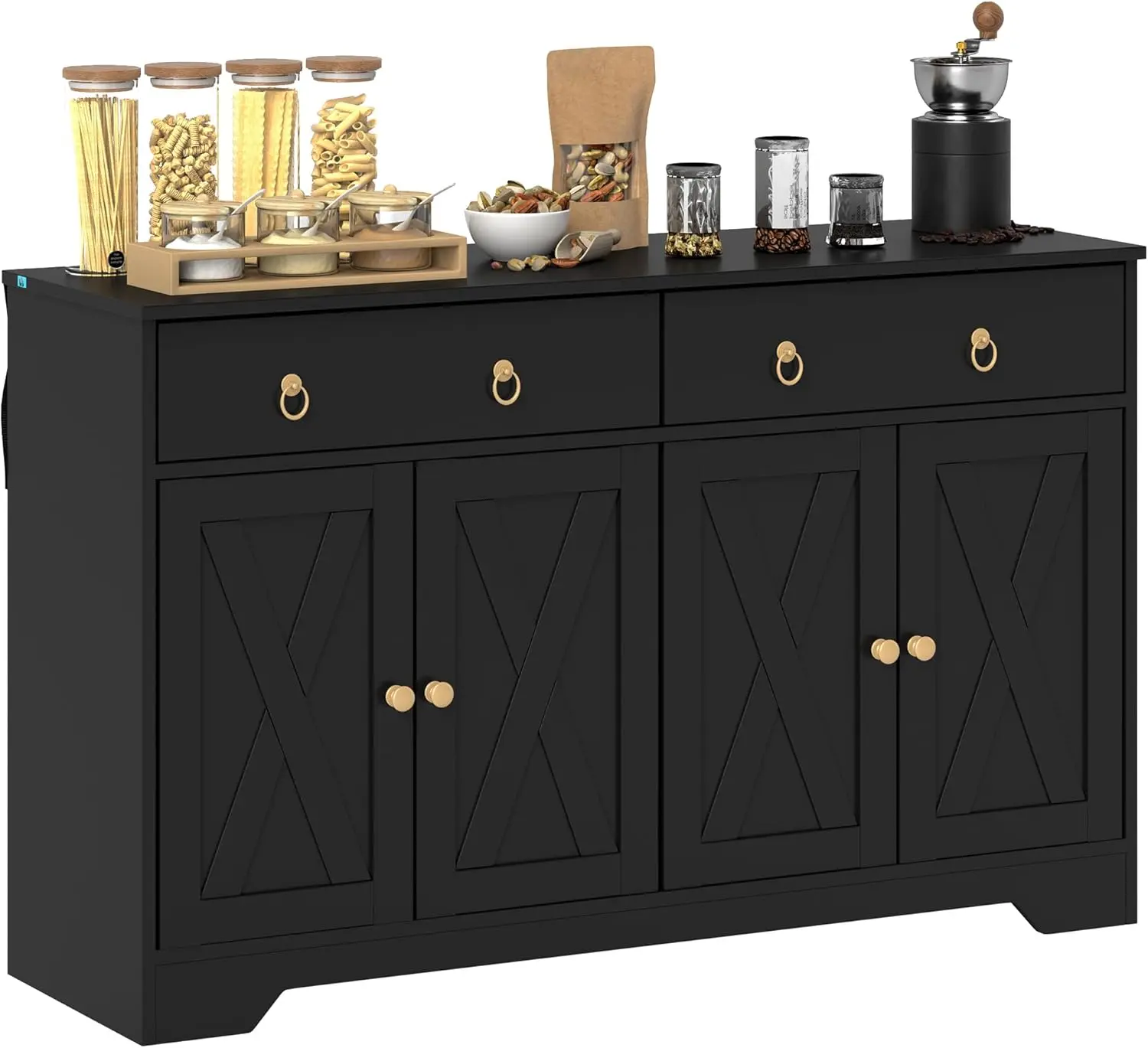 Customizable 48" Sideboard Buffet with Storage, Kitchen Storage Cabinet with 2 Drawers and 4 Barn Doors, Farmhouse Coffee