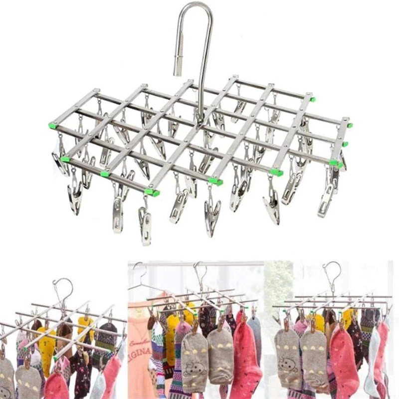Foldable Laundry Hanger Stainless Steel Underwear Sock Drying Rack Windproof Flat Head Design Rust Resistant Strong Grip Clip  Read more