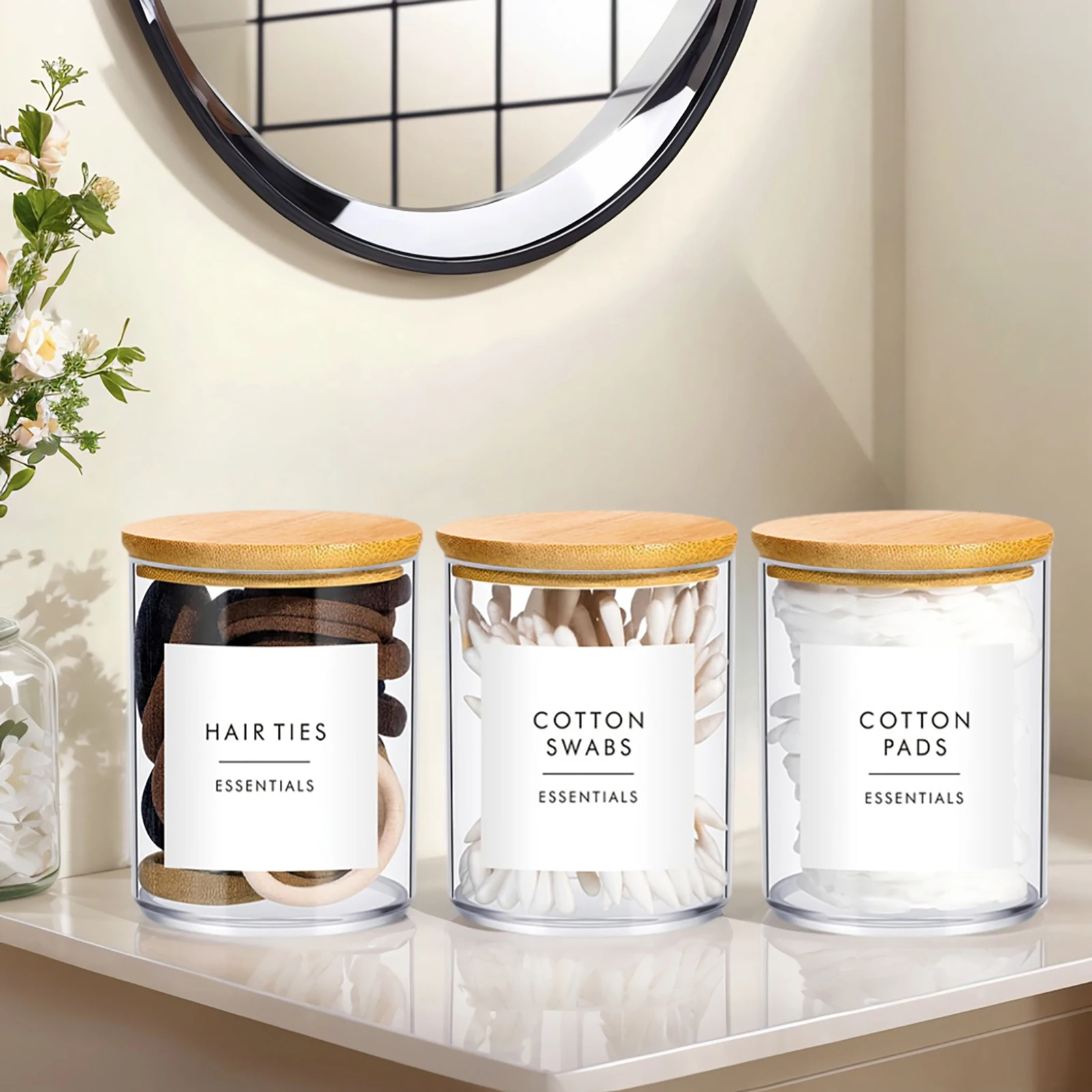 Bathroom Organizer Accessories Set Qtip Holder Storage with Clear Plastic Lids, Cotton Ball/Swabs Dispenser, Organizer Jar