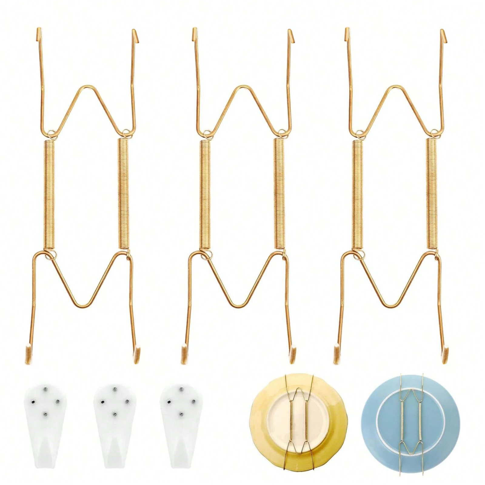 4/6/8/10/12 Inch Plate Dish Hangers Holder W-shaped Wall Display Decorative Invisible Spring Hanging Hook Golden   Read more