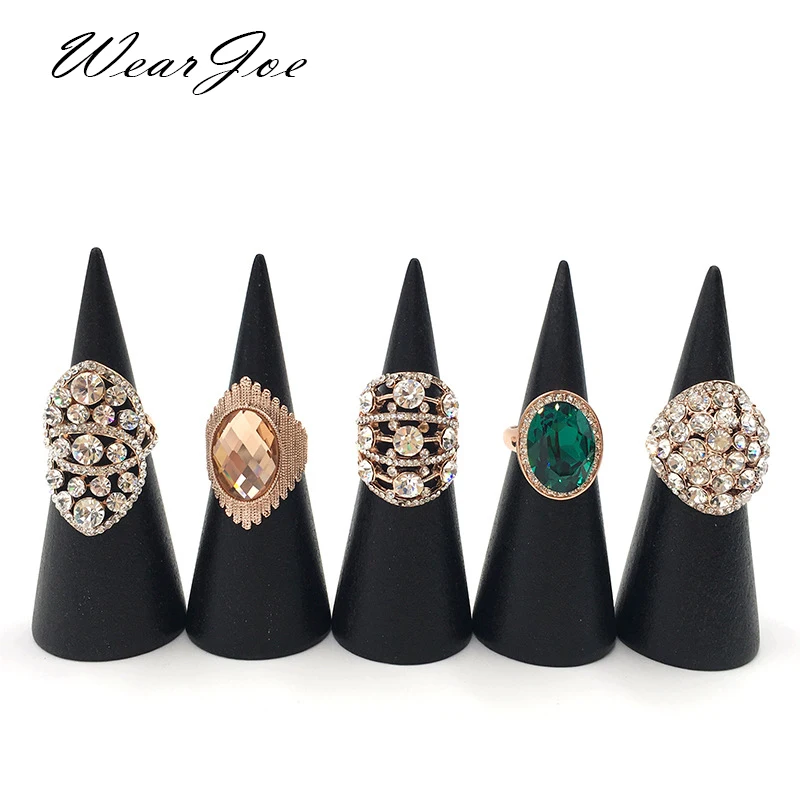Vintage Black Wooden Ring Holder Display Cone Rack Solid Wood Finger Trinket Stand Storage Organizer Jewelry Ring Stack Showcase  Read more
