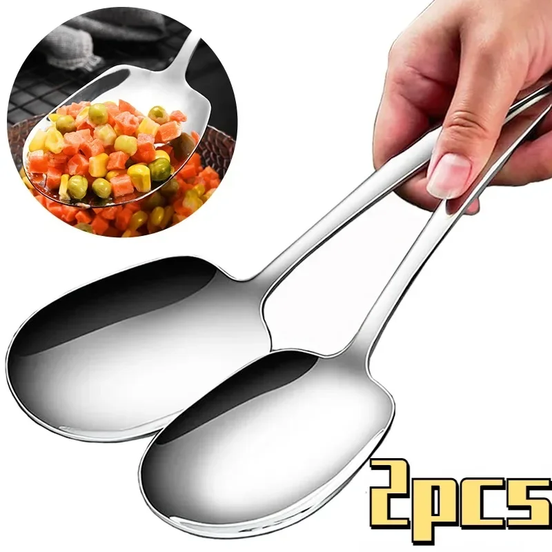 2/1Pcs Large Stainless Steel Spoon Long Handle Spoons Kitchen Cutlery Rice Dumpling Porridge Soup Scoops Restaurant Tableware
