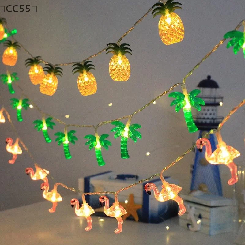 〔CC55〕Hawaii Light String Pineapple Flamingo Coconut Tree Light Strings Tropical Fruit Light Kids Hawaiian Birthday Party Decor