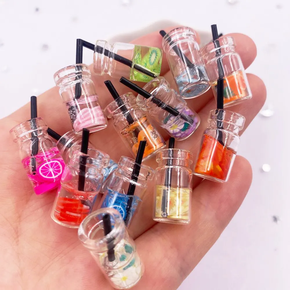 10PCS Resin Kawaii Colorful Mini Soft Pottery Fruit Drink Cup Scrapbook Flatback 3D Figurine Accessories DIY Home Decor Crafts