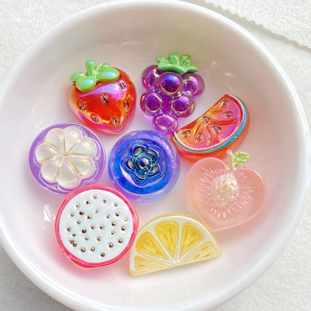8pcs Cute Electroplated Fruit Grape, Strawberry, Grape, Lemon Fruit Flat back Stone Figurines Scrapbook DIY Jewelry Decor Crafts
