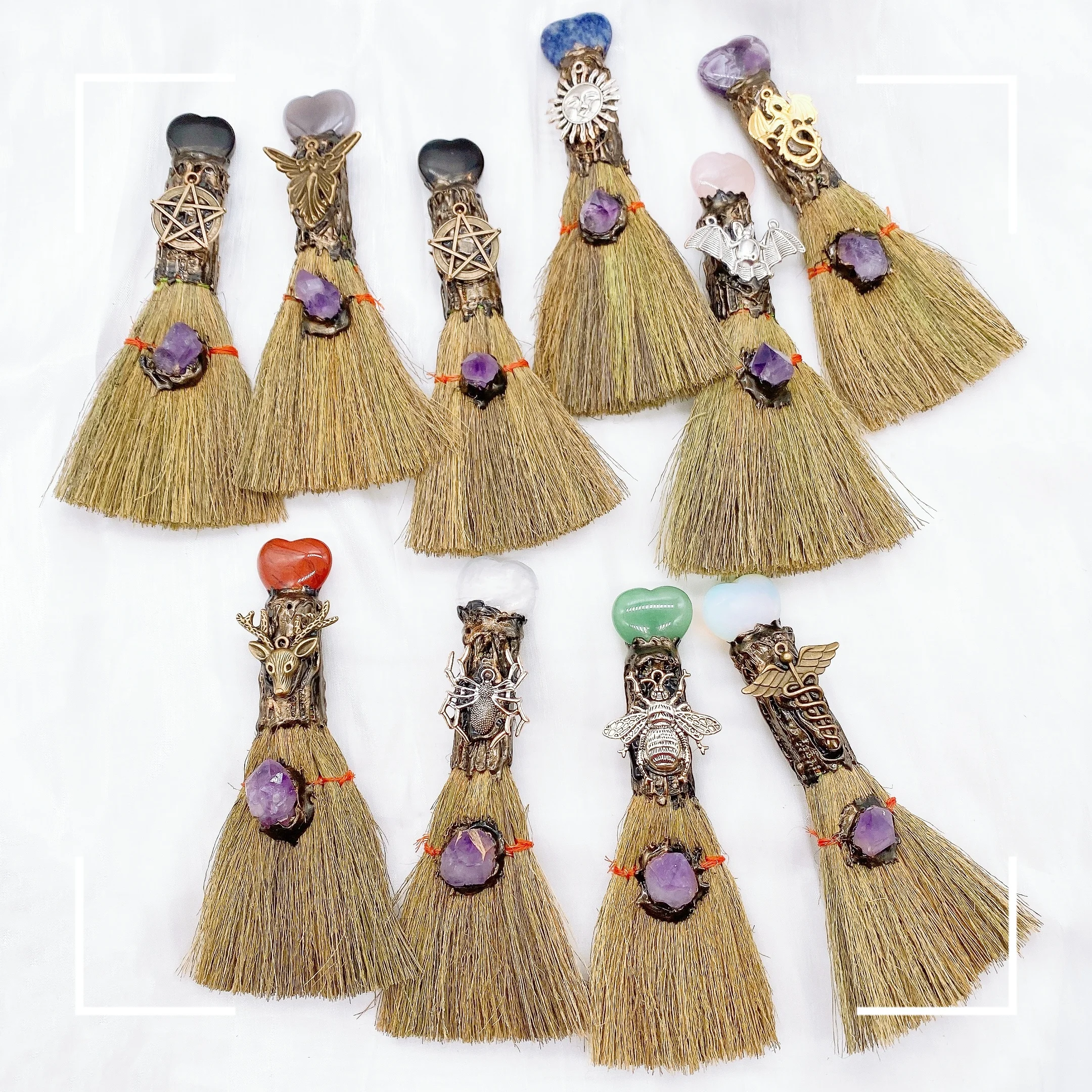 Natural Amethyst Crystal Love Heart Magic Broom Gem Crafts Home Decoration Reiki Healing Witch Broomstick Christmas Gift  Read more