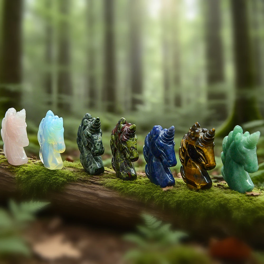 2-inch Crystal Unicorn Hand Carved Gemstone Animal Carving Collection Statue Spiritual Meditation Table Home Decoration Gift