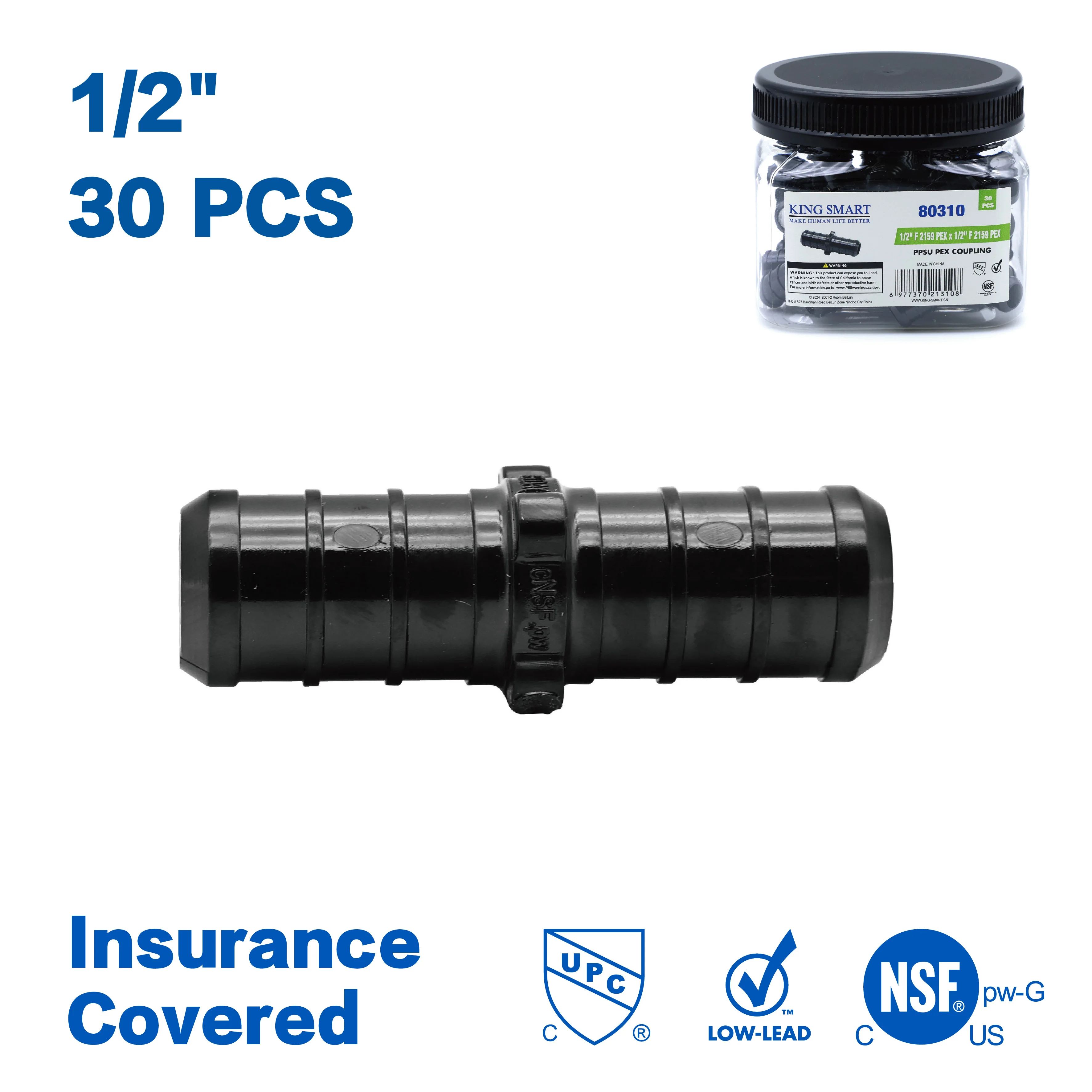 KING SMART Crimp/F2159 PEX 1/2" * 1/2 PEX Coupling; 30Pcs/Case; PPSU; 80310  Read more