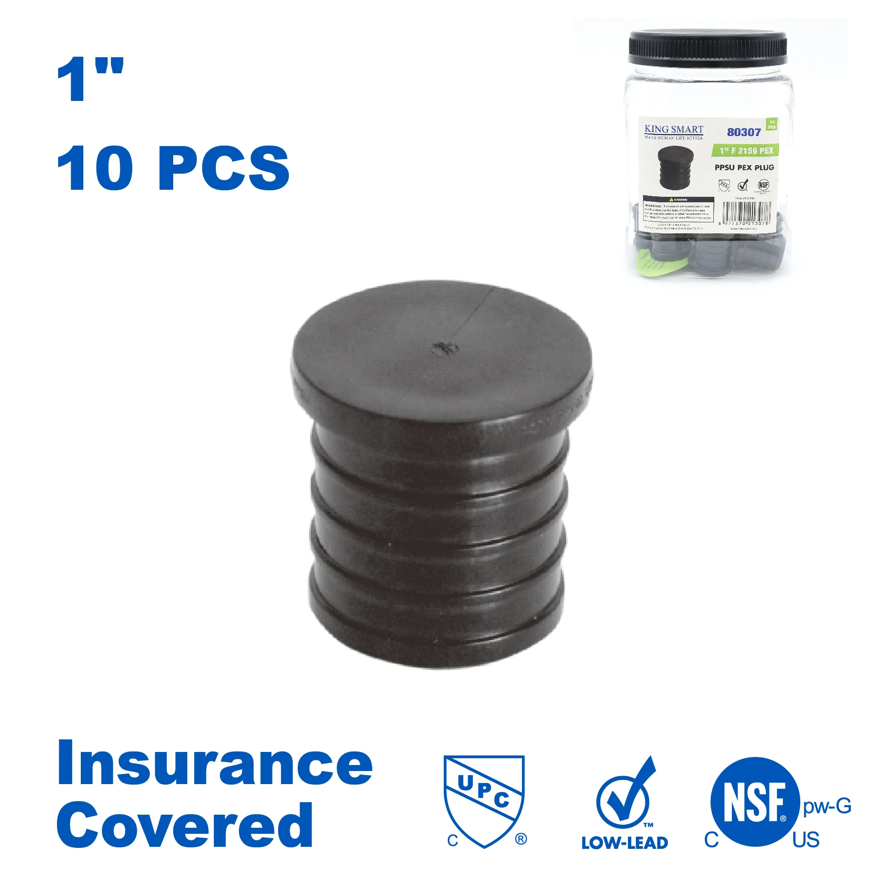 KING SMART Crimp/F2159 PEX 1" PEX Plug; 10Pcs/Case; PPSU; 80307