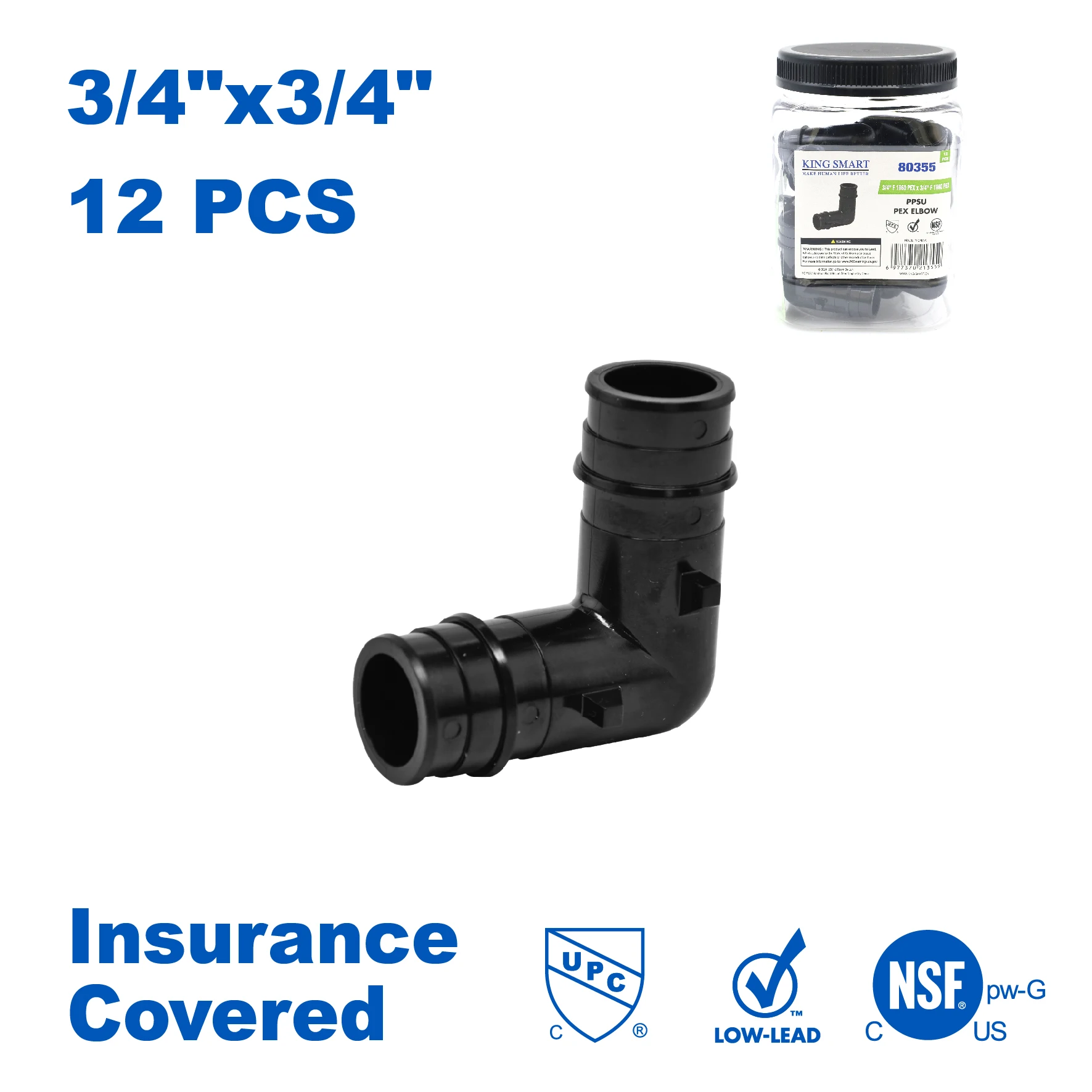 KING SMART F1960/Wisbo/PEX A Expansion 3/4" * 3/4" PEX Elbow; 12Pcs/Case; PPSU; 80355