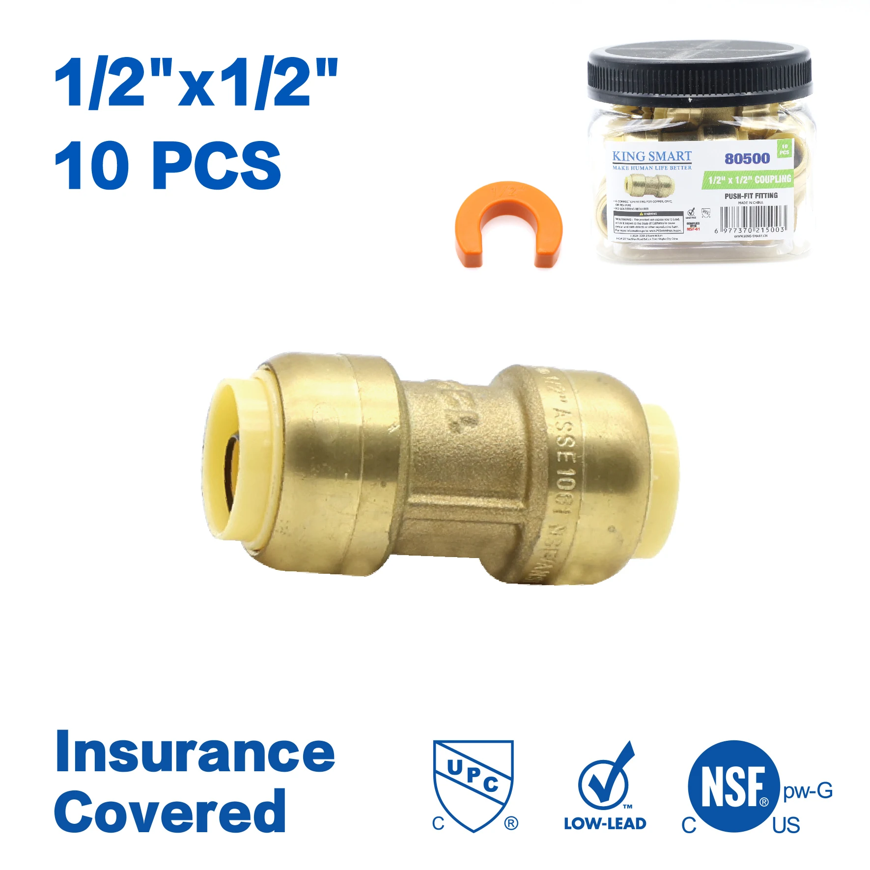 KING SMART 1/2" Push Fit * 1/2" Push Fit Coupling; 10Pcs/Case; 80500