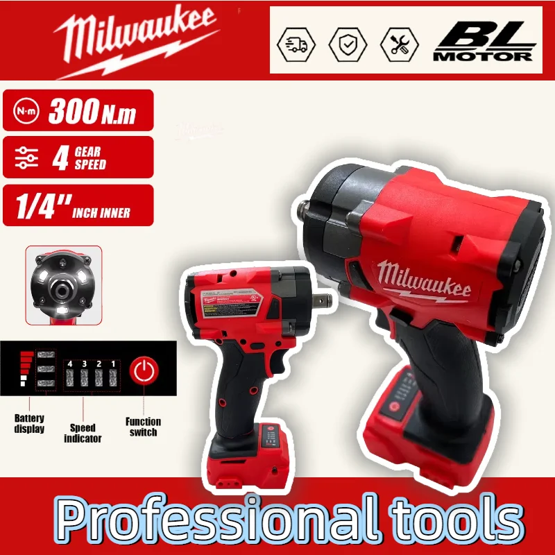 Milwaukee Cordless Electric Impact Wrench 300N.M Brushless Wrench Pin4 GEARS Power Tool Cordless High Torque screwdriver