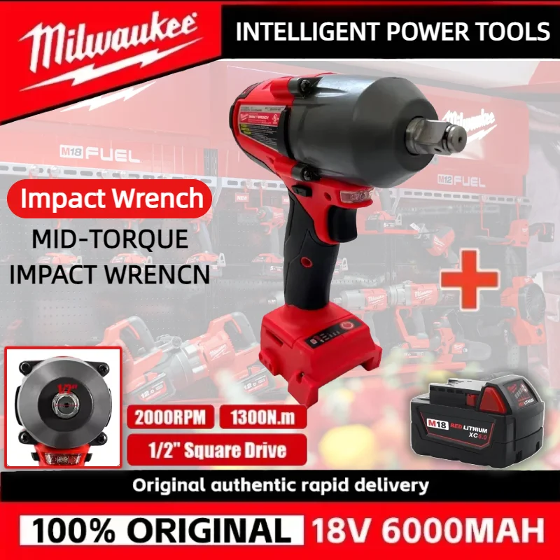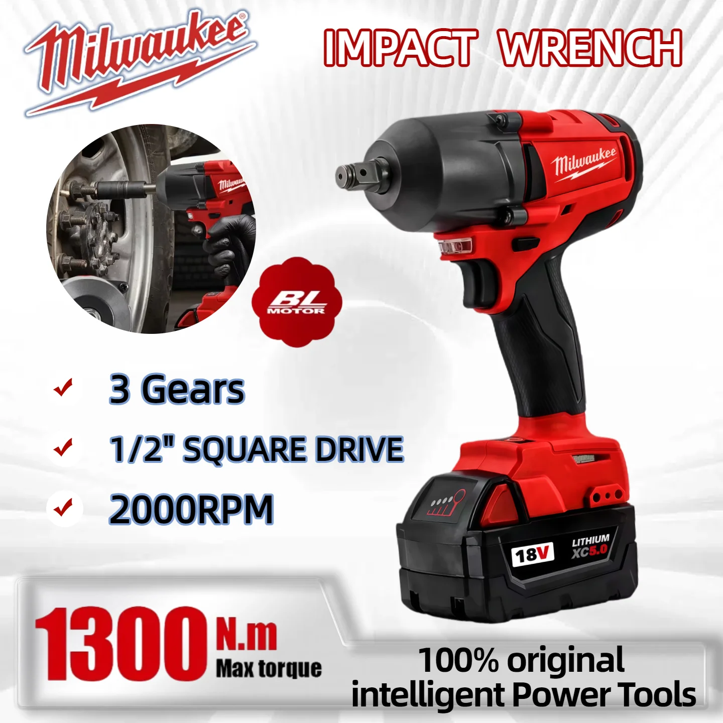 Milwaukee 1300NM NEW Brushless Electric Wrench 18V Cordless Impact Wrench 1/2 Inch Square drive Repair HIGH TORQUE Power Tools
