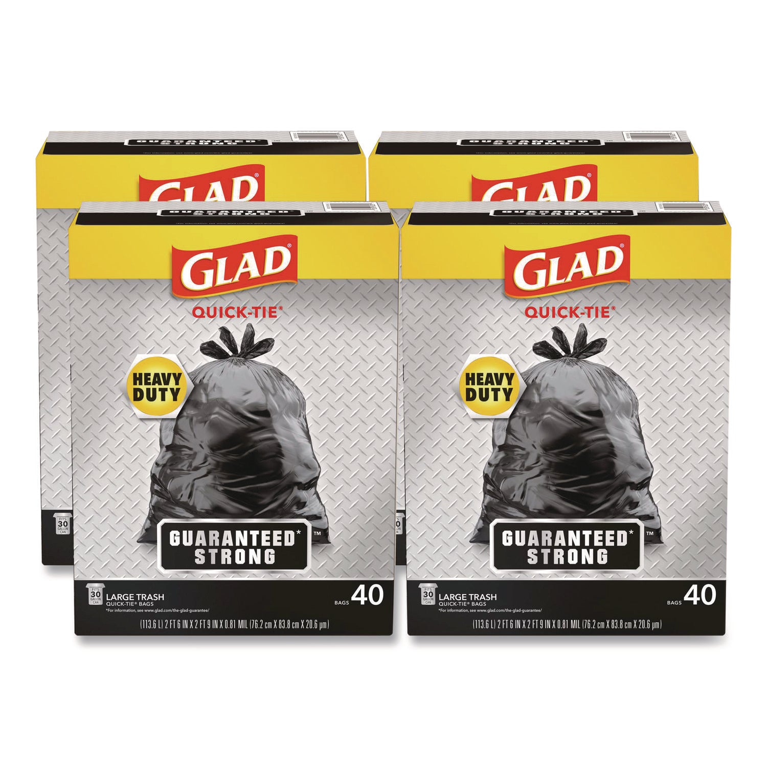 Glad Large Quick-Tie Trash Bags, Extra Strong, 30 gal, 0.81 mil, 30 x 33, Black, 40 Bags/Box, 4 Boxes/Carton (CLO60035)