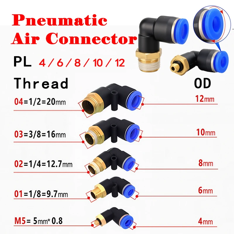 20/50/100PCS PL Quick Push In 2 Way Connector 4-12mm Male Pneumatic Thread Elbow Joint Hose OD 1/8" 1/4" Air Fittings Universal  Read more
