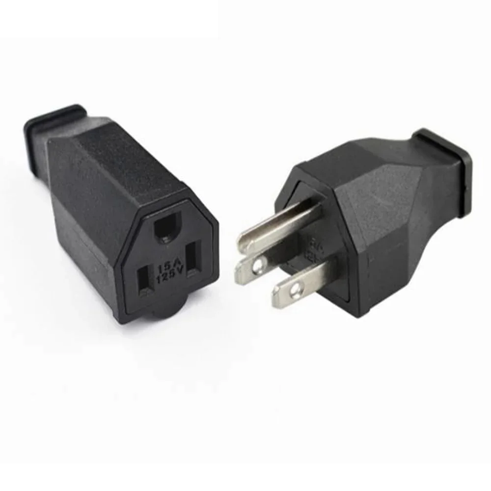 2PCS Black Copper American Male Female 3 Pins Power Plug Electrical AC 125V 15A US Power Cord Detachable Wiring Plug Socket