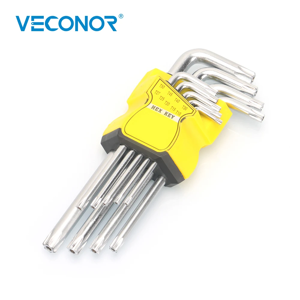 9Pcs Set Durable Metric Short Arm Torx Chrome Vanadium Key Star Wrench Hand Tool Screwdriver T10 T15 T20 T25 T27 T30 T40 T45 T50