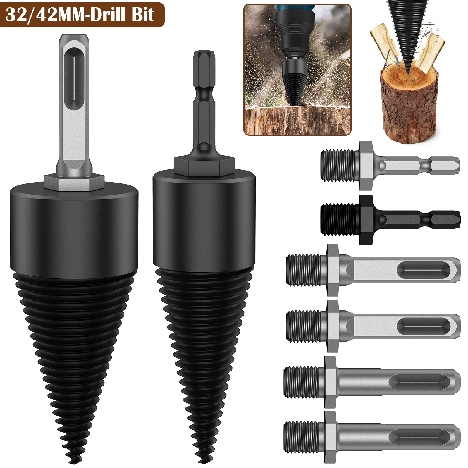 1/2PCS Wood Drill Bit 32/42mm Wood Splitter Screw Cones Bit Round/Hex/Square Shank Firewood Split Drilling Tool For Hammer Drill