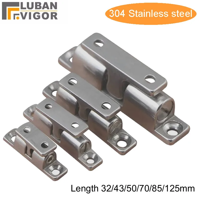 304 Stainless Steel Door stopper Double Ball Latch Lock Length 32 43 50 70 85 125mm Adjustable for Cabinet Closet Door