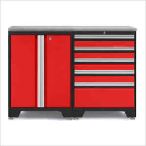 This NewAge Products tool cabinet storage set features sturdy 18-gauge steel frames and 19-gauge double-wall drawer fronts, along with a stainless steel work surface.