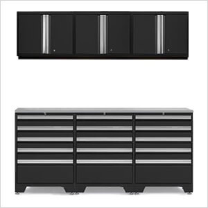 A great addition to your garage or workshop, the 12-piece PRO 3.0 series cabinet set with stainless steel worktops is made from 18 gauge steel fully welded frames and 19 gauge double wall doors.
