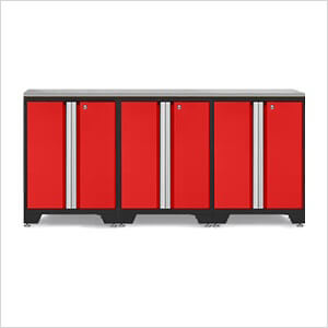 This NewAge Products garage cabinet storage set is built with durable 18-gauge steel frames and 19-gauge double-wall door and drawer fronts, enhanced by a stainless steel work surface.