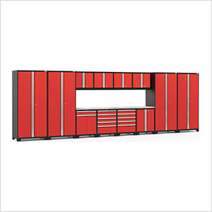 A great addition to your garage or workshop, the red 14-piece PRO 3.0 series cabinet set with bamboo worktops is made from 18 gauge steel fully welded frames and 19 gauge double wall doors.