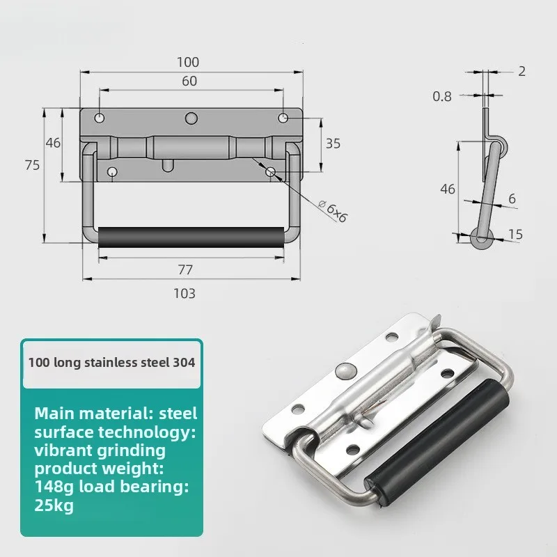 304 Stainless Steel Folding Handle Toolbox Movable Handle Wooden Box Ring Industrial Equipment Box Spring Handle