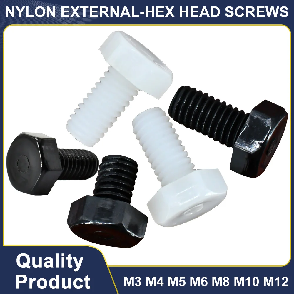 M3 M4 M5 M6 M8 M10 M12 Black White Nylon External-Hex Head Screws Plastic Insulated Outer Hexagon Electrical Resistance Bolt