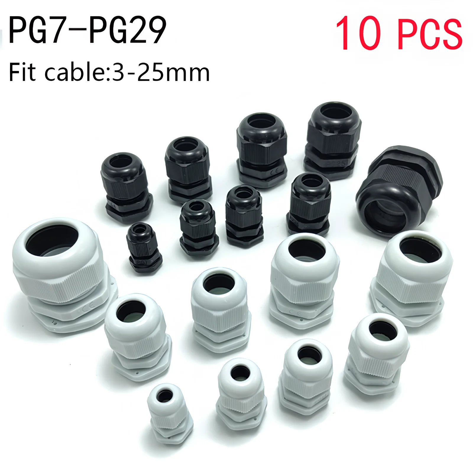 10pcs Waterproof Cable Gland PG7 PG9 PG11 PG13.5 PG16 PG19 PG21 PG29 white black nylon plastic connection fixing head IP68