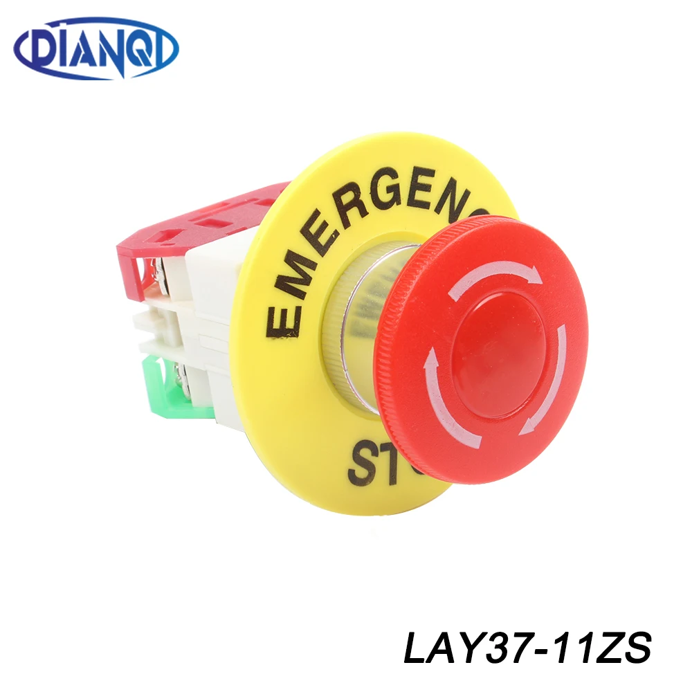Plastic Shell Red Sign Push Button Switch DPST Mushroom Emergency Stop Button AC 660V 10A NO+NC LAY37-11ZS