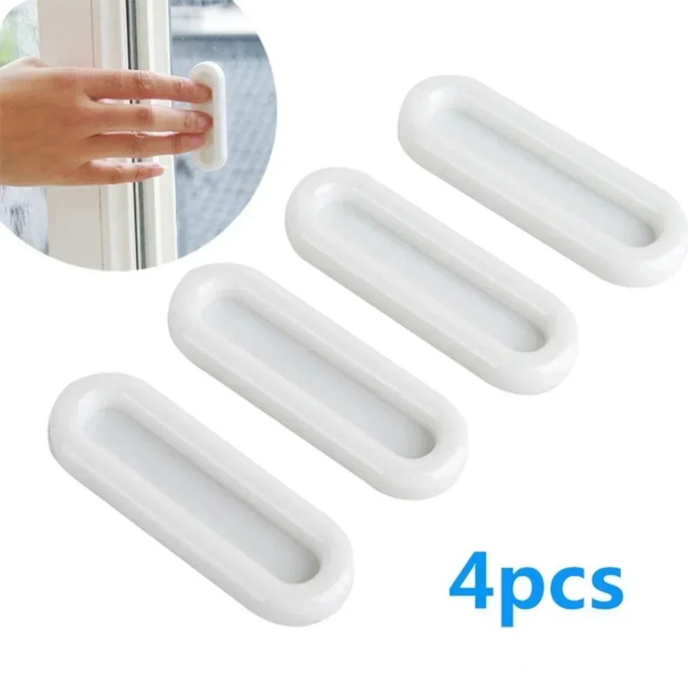 4pcs Door Handle Self-Adhesive Door Handle Cabinet Pull CasementDrawer Wardrobe Sliding Handle White Plastic Home Furniture Part