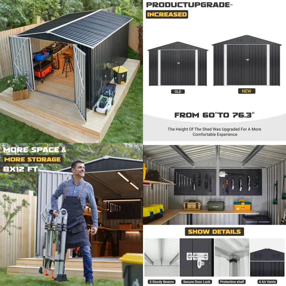 "Outdoor Metal Storage Shed, 8x12 Feet, Updated Frame Structure, Ideal for Garden, Patio, and Lawn"
