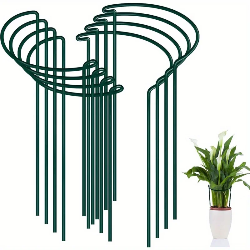 6pcs Plant Support Stakes, Peony Cages and Supports, Metal Garden Plant Stake ( 10" Wide x 24" High) Green Half Round Plant Supp