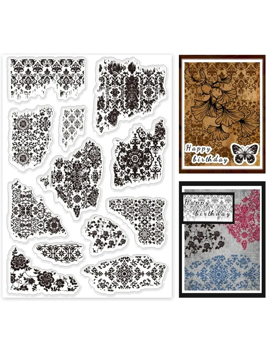 1Sheet Vintage Texture Background Clear Stamp Set 12pcs Transparent Rubber Stamp Retro Silicone Stamp for Scrapbooking Card