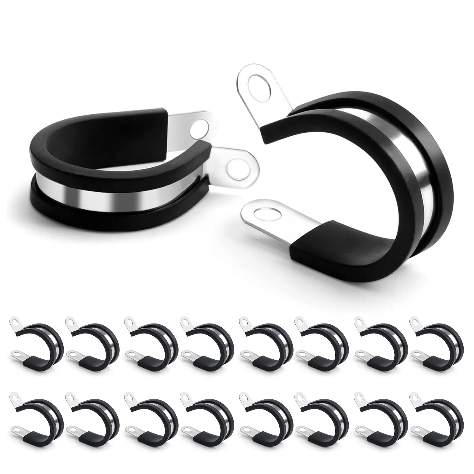 10pcs Cable Clamps 304 Stainless Steel Clamps Rubber Cushion Cushioned Insulated Wire Line Tube Pipe Fixed Bracket Metal Clip