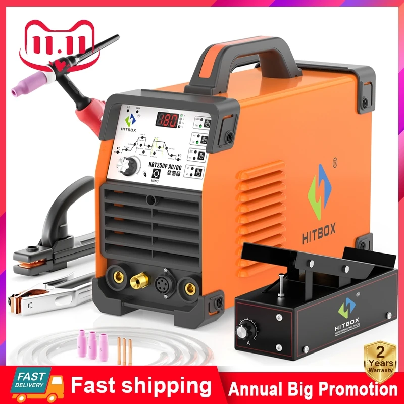 HITBOX 200A 6 in 1 HF TIG AC/DC Aluminum Welding Machine MMA ARC Argon Precise Digital Pulse Stainless Welder 2T/4T HBT250P 220V